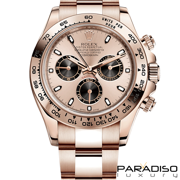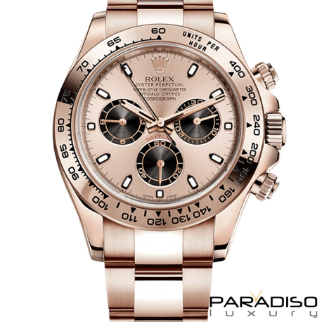 Rolex Cosmograph Daytona Everose, nuovo mai indossato. Il Rolex Cosmograph Daytona, lanciato nel 1963, è stato progettato per rispondere alle necessità dei piloti professionisti. Il movimento cronografico brevettato e la lunetta con scala tachimetrica consentono ai piloti l’esatta misurazione della velocità media fino a 400 chilometri orari o - a scelta - miglia orarie. Un’icona che nome e funzioni legano da sempre all’universo degli sport automobilistici e delle prestazioni elevate.